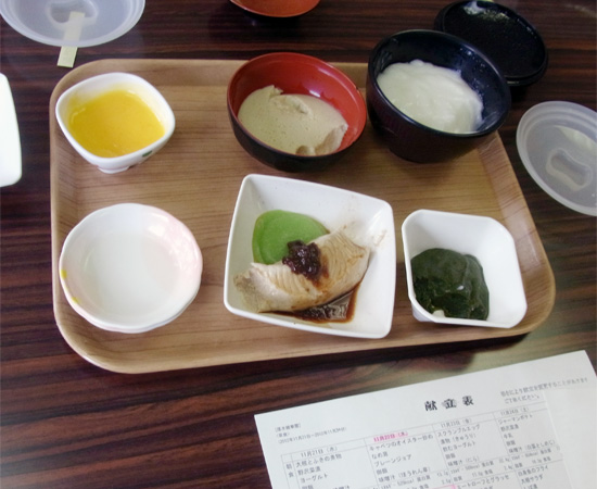 監査終了後、厚木精華園に伺った際“口どけ食”の試食をさせていただいた。要は嚥下機能(飲み込む力)が弱った方々が温かいまま、口に入れると溶ける物で、ブリなどは魚そのものの味がし、感動をした。食事は人間生活の中でも大事な行為。 今まではゼリー状ということで温かいものを温かいままで提供することが難しい中を、このような形で園内の利用者に出され、好評を博しているとのことであった。