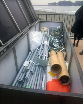 昨年6月に県の鳴り物入りで完成したもので、震災の際の津波対策の一環として完成したもの。写真19では、写真22の太陽光発電で得た電気で携帯電話の充電や、その他の電源として使える。そして猛暑を避けるためのテント、写真21が備えられている。また、写真20は、私がかねてから県民の方々に将来の太陽光パネルの説明をし実物を見たかった巻物タイプの太陽光パネルがお披露目された。これによって、さらに太陽光発電の勢いは盛んになるのではないかと思われる。