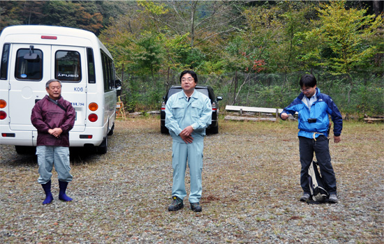 早速、全体での会合が行われ、主催者として私が挨拶をさせていただき、注意事項、間伐の作業の説明そしてラジオ体操と進んだ。