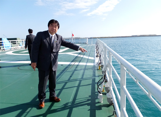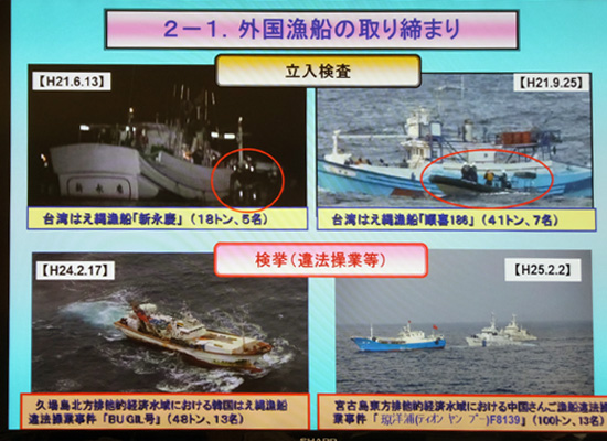 沖縄近郊の海域をめぐる現状と海上における不法な取引(密輸や薬物取引)への対策、自衛隊や米軍との連携、地元市町村との協力関係などについてプレゼンを受け、「よなくに」に乗船させていただいた。。