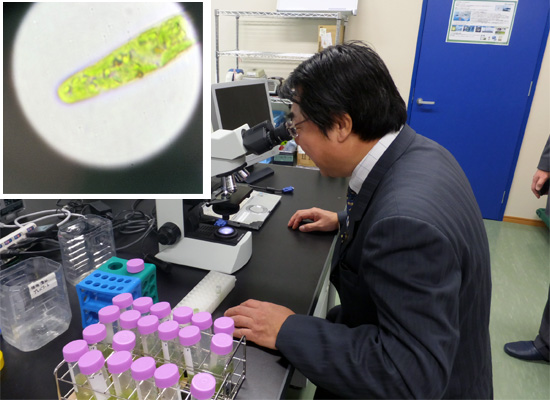 同社研究所で食料問題、及び環境問題解決への可能性も秘め、注目されているユーグレナの効果や研究における課題、今後の事業展開等について伺った。