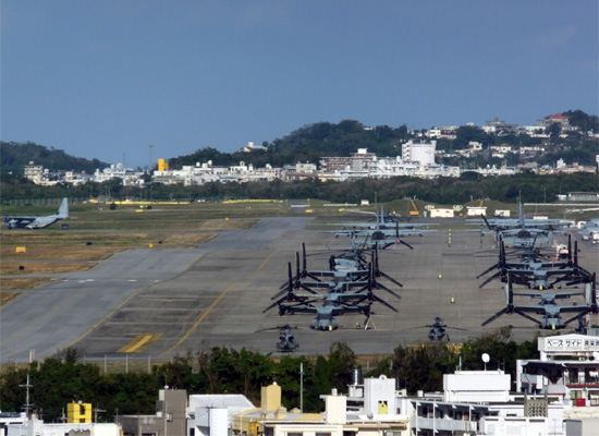 多くのオスプレイが並び、尚且つ基地周辺で訓練する様子に、改めて基地問題の本質を見た思いがした。