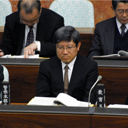 県内の木材生産は、これまでの取組の中で着実に増加を続け、昨年度は1万6千立方メートルと、取組を始める以前の平成15年度の4倍上に増加している。こうした状況の中で、昨年は、東日本大震災の影響で県内外の木材流通が一時期、停滞したことや、一度期に集中して木材が搬出されたことなどで市場機能が有効に働かず、原木が山や市場に滞るという事態が発生したと聞いている。 平成26年度に3万立方メートルを目標として、これまで以上に木材生産量の増加に取り組むのであれば、原木の流通部門での対策は喫緊の課題である。